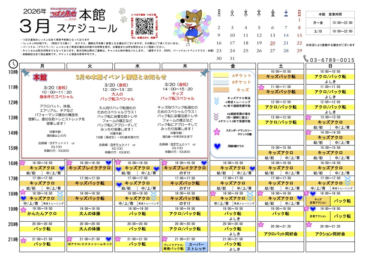 2026年2月 本館/別館スケジュール