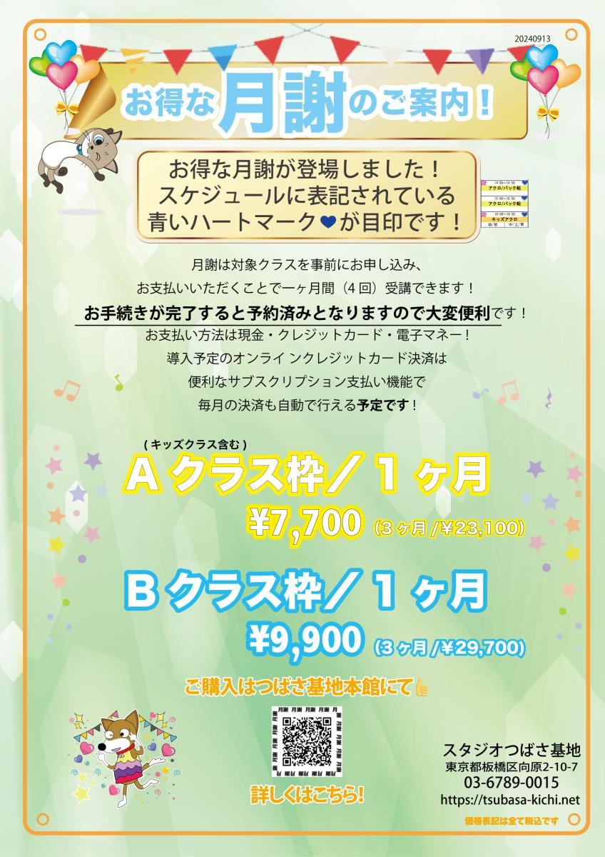 お得な月謝が登場しました!2024年10月より、スケジュールに表記されている青いハートマーク💙が目印です!