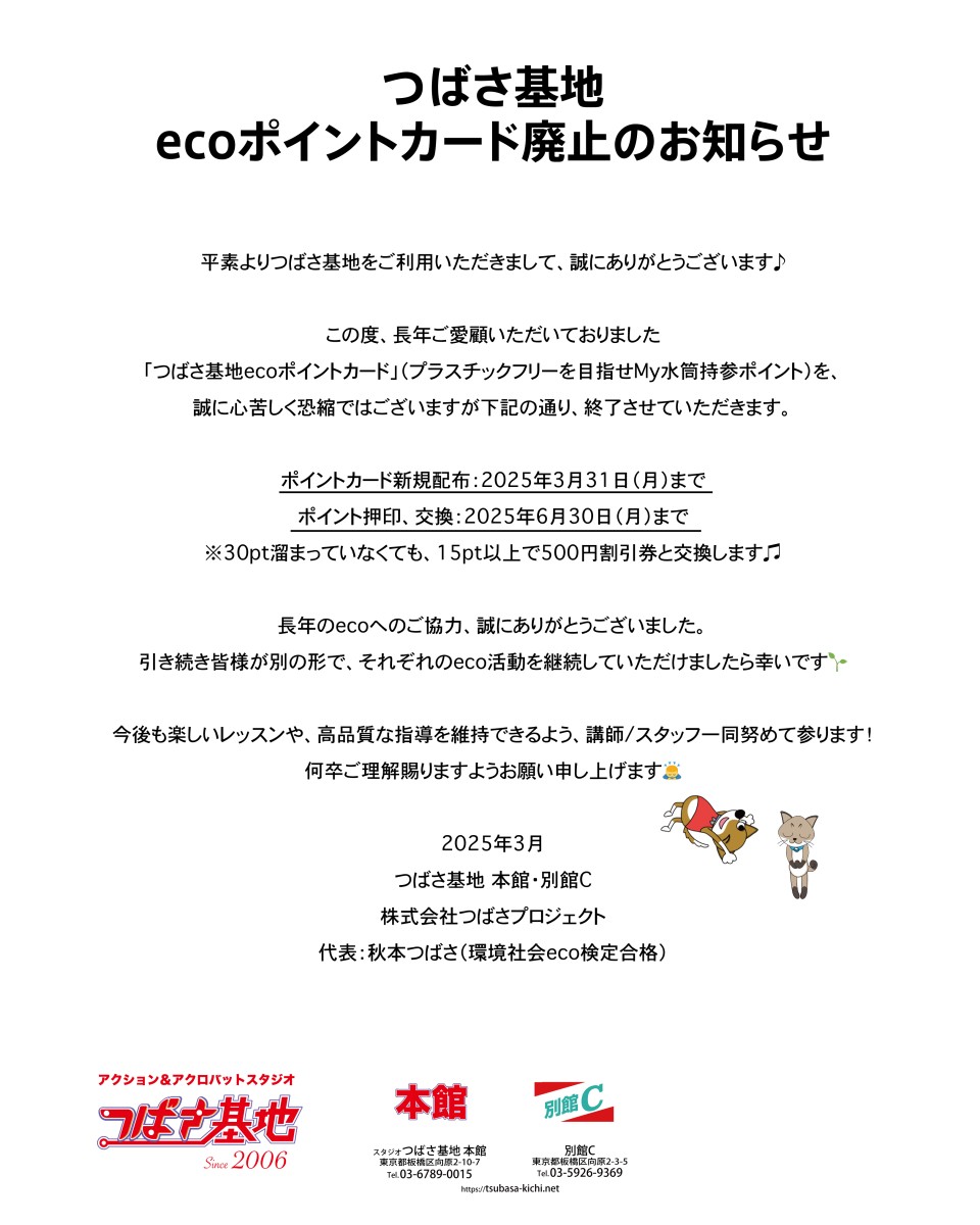 この度、長年ご愛顧いただいておりました「つばさ基地ecoポイントカード」(プラスチックフリーを目指せMy水筒持参ポイント)を、
